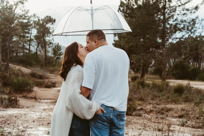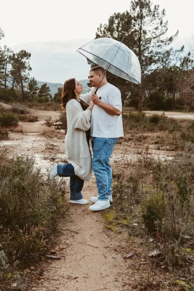 La météo nous a offert une pluie fine, presque cinématographique. Loin de gâcher la séance, elle a rendu l’atmosphère encore plus romantique. Sous leur parapluie, les regards étaient plus proches, les gestes plus tendres, les sourires encore plus sincères.