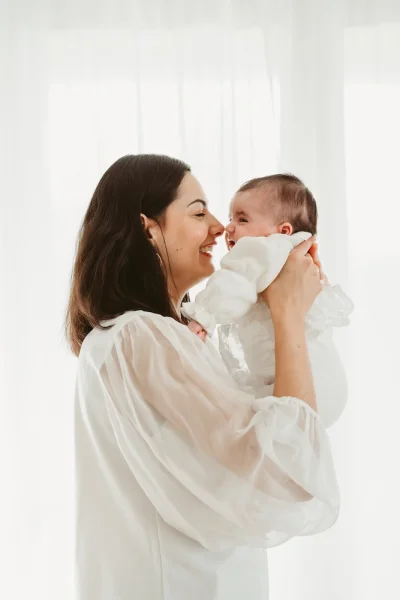 Le rythme de bébé guide toujours la séance : pauses câlins, tétées, bercements. L’ambiance est calme, chaleureuse, sécurisée.