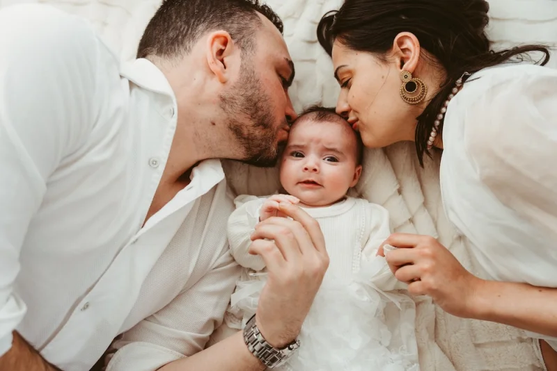 Accompagner une famille de la séance grossesse en extérieur jusqu’à la séance nouveau-né en home studio permet de raconter une véritable histoire.